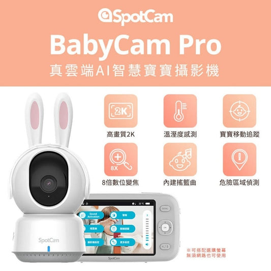 SpotCam BabyCam Pro 360°雲台2K寶寶AI監控攝影機